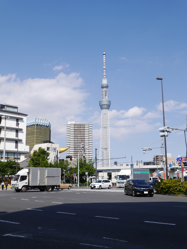 จนถึงสี่แยก ทางขวามือจะเห็น Tokyo Skytree อยู่ไม่ไกล